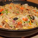 The Castilian name paella originally only referred to the large pan. Meanwhile also the rice dish itself. Paella used to be a rather regional dish in the province of Valencia in the centre of today's Valencian Community. In the meantime it has become a national dish together with the tortilla.