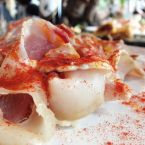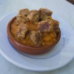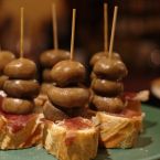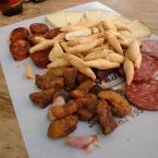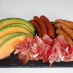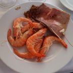 But there are always olives and vegetables, prepared in the style of Italian starters. In addition Lomo (short roasted pork, meatballs, Serrano and Iberico ham, Chorizo sausages, Manchego cheese and regional cheese varieties, shrimps, sardines, anchovies, boquerones, squid, tortilla, paella rations, Ensaladilla Rusa (Russian salad – very tasty, but mostly with a lot of mayo) and fruits, preferably melon matching the Serrano.